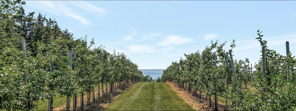 Property Highlights — 60+ acres of scenic orchard land producing premium cider apples, including heritage varieties carefully cultivated for craft cider production with breathtaking water views;