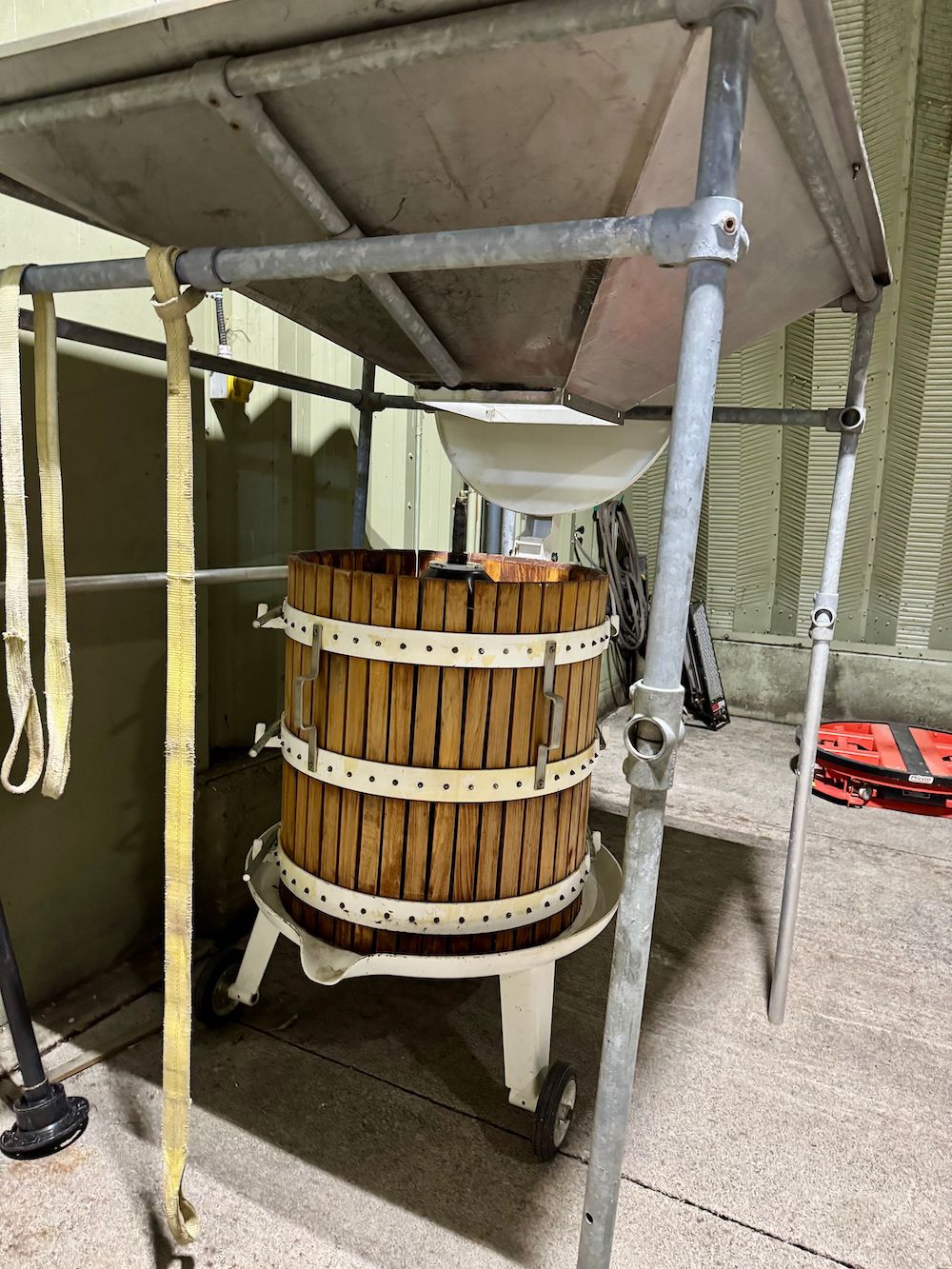 We each received a yellow harvesting bin and got down (literally) to snipping the small frozen grape clusters off the vines. As our bins filled, there was chatter, laughter and questions about icewine production posed by various wine club members. Mottiar shared that the grapes will immediately be pressed in small hydraulic basket presses.