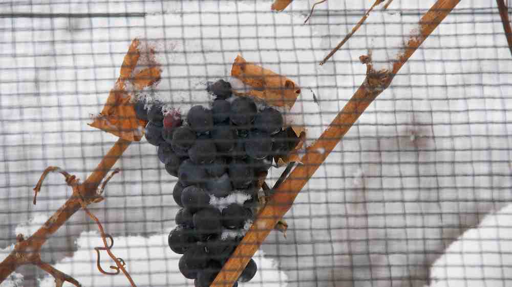• The grapes must be naturally frozen on the vine and harvested and pressed in a continuous process while the air temperature remains at or below -8 C.