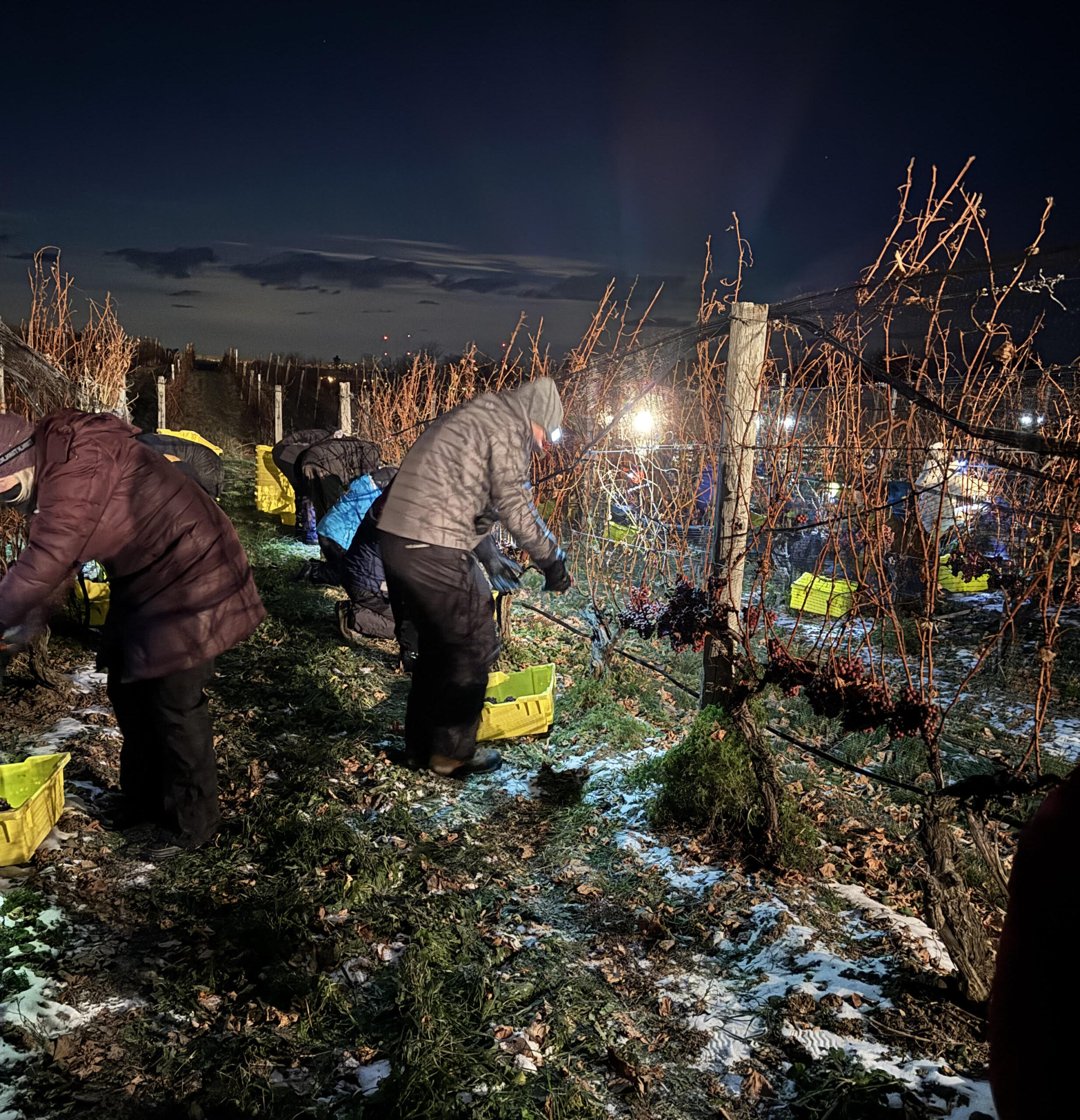 The excitement was palpable as this was the first icewine harvest at the winery since 2019. COVID had put a damper on demand for the sweet stuff, so none was made in the interim.